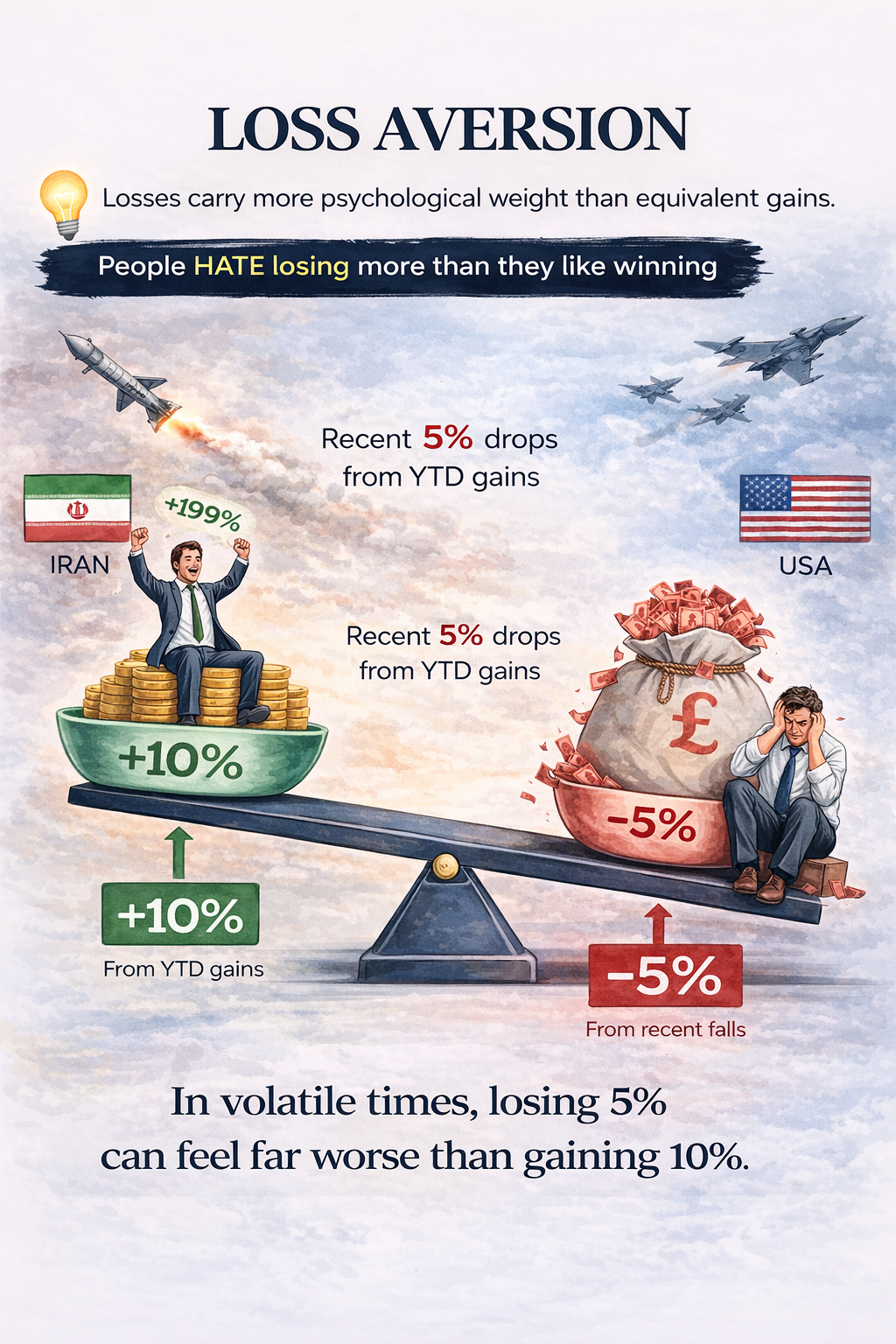 Behavioural finance research shows that losses feel far more painful than gains feel rewarding.